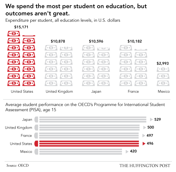 5. Οι δαπάνες για την εκπαίδευση ανά μαθητή είναι μεγαλύτερες από κάθε άλλη χώρα, όμως τα αποτελέσματα είναι δυσανάλογα των εξόδων.