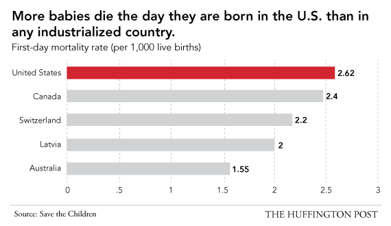 13. Στις Η.Π.Α πεθαίνουν τα περισσότερα μωρά, στη πρώτη μέρα της ζωής τους, από κάθε άλλη βιομηχανική χώρα