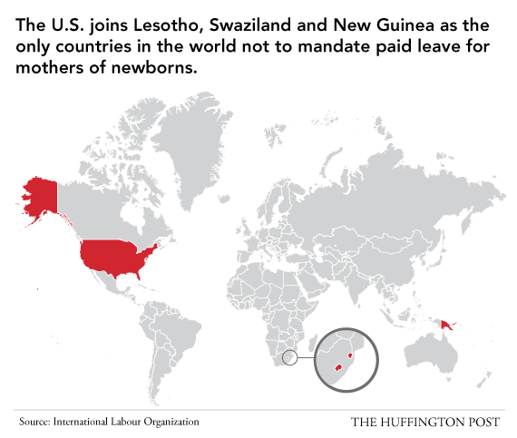 1. Οι Η.Π.Α μαζί με τη Νέα Γουινέα, το Λεσόθο και τη Σουαζιλάνδη είναι οι μοναδικές χώρες στο κόσμο όπου δεν είναι υποχρεωτική η άδεια επί πληρωμή για της μητέρες νεογέννητων μωρών.