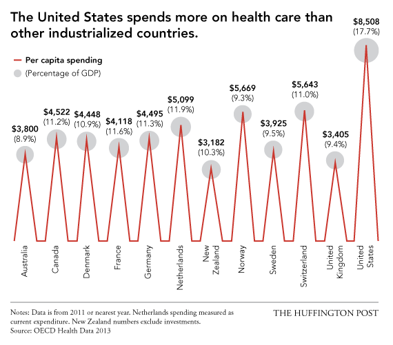 11. Οι Η.Π.Α ξοδεύει τα περισσότερα για υγειονομική περίθαλψη από κάθε άλλη βιομηχανική χώρα