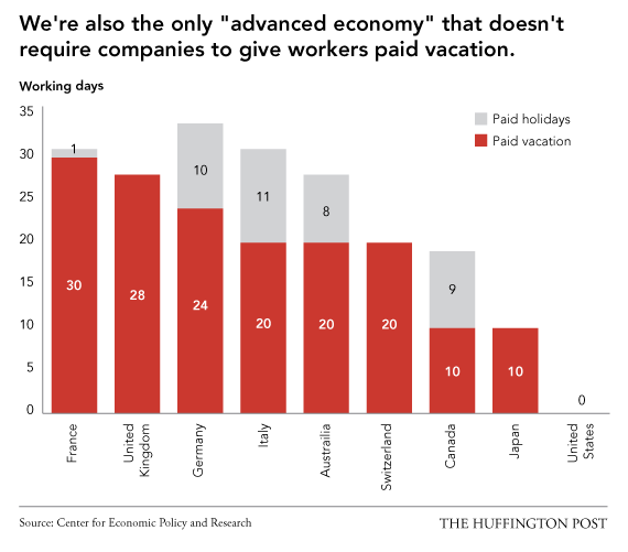2. Οι Η.Π.Α είναι η μοναδική «ανεπτυγμένη» χώρα που δεν υποχρεώνει τις εταιρίες να δίνουν στους εργαζόμενους άδειες επί πληρωμή.