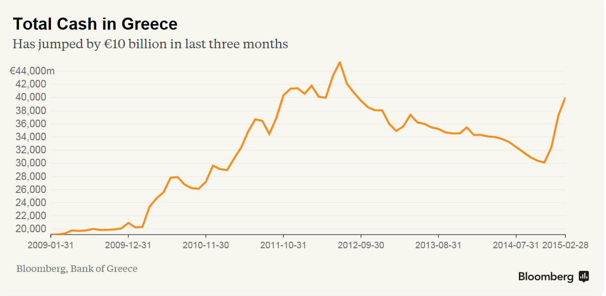 «Δεν είναι μυστικό ότι οι τράπεζες στην Ελλάδα έχουν χάσει πολλές καταθέσεις τους τελευταίους μήνες. Το ερώτημα είναι που τοποθέτησαν οι Ελληνες τις καταθέσεις τους; Τις έχουν μεταφέρει σε άλλες τράπεζες ή τις έχουν κρύψει κάτω από το στρώμα και κάτω από τα πλακάκια μπάνιου;» αναρωτιέται το Bloomberg.