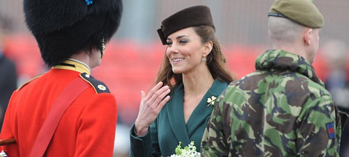 Η δούκισσα του Κέιμπριτζ δεν παραβρέθηκε στην παρουσίαση των Ιρλανδών Φρουρών στη γιορτή του Αγίου Πατρικίου, καθώς θέλησε να επιστρέψει στο σπίτι της, το παλάτι Ανμερ Χολ στο Νόρφολκ για να δει τα παιδιά της καθώς ήταν για αρκετές ημέρες μακριά τους, στο Λονδίνο, λόγω άλλων υποχρεώσεων.