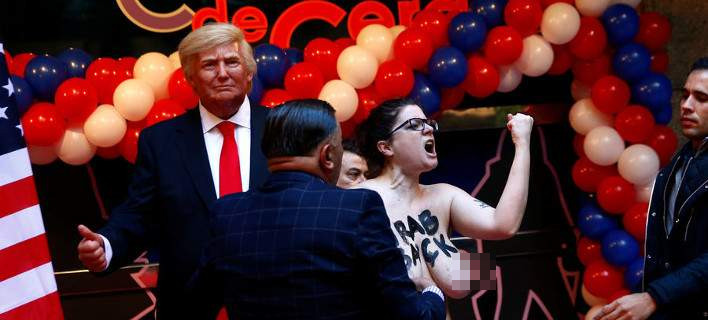 Μια ακτιβίστρια Femen πραγματοποίησε μια δράση πάνω σε ένα ομοίωμα του Ντόναλντ Τραμπ στη Μαδρίτη και συνελήφθη.