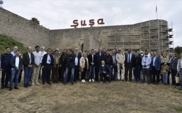 Αναμνηστική φωτογραφία των διπλωματών που πήραν μέρος στη φιέστα ντροπής και μίσους στο Σουσί (φωτ.: apa.az/infoteka24.ru)