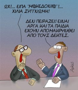 Κι αφού οι από ‘κει θα είναι Μακεδόνες –με ταυτότητα και διαβατήριο αναγνωρισμένα πια– οι από ‘δω μεριά, τι σόι Μακεδόνες θα είναι; Της από ‘δω μεριάς ή της από ‘κει;
